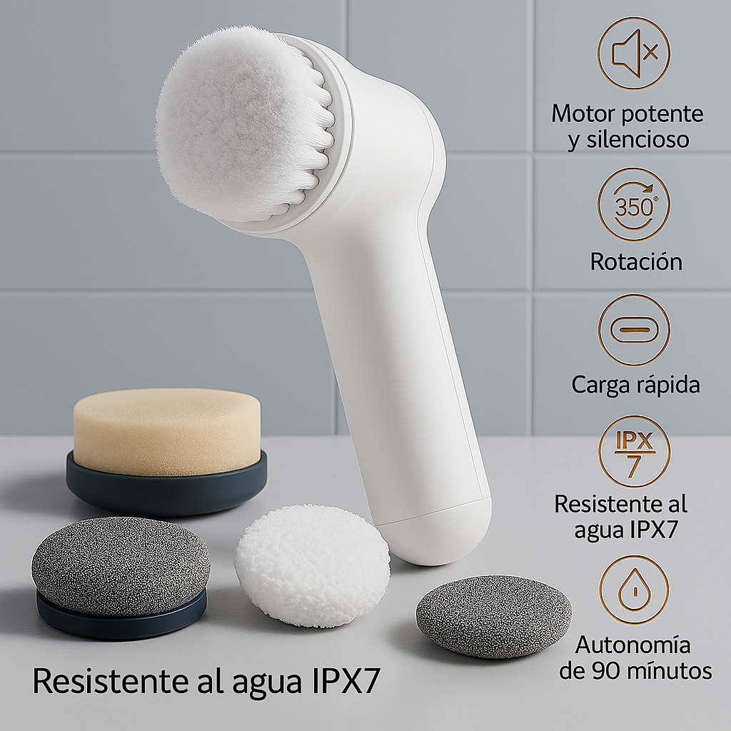 Haz clic y llévatelo con todo incluido: base eléctrica, cabezales, cable USB y manual. ¡Tu limpieza nunca fue tan fácil!