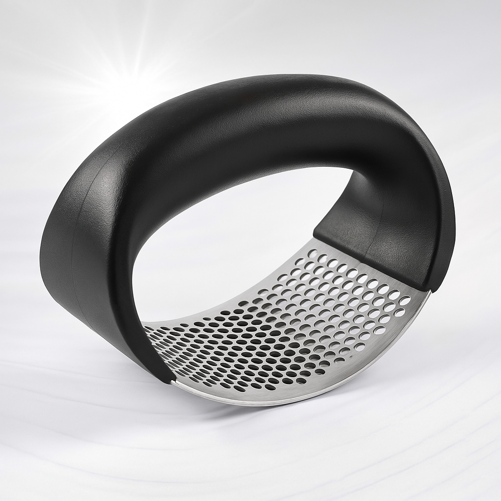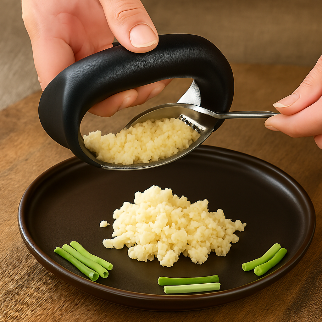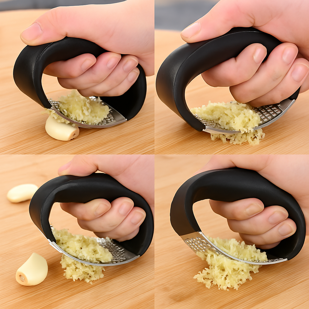 Nuestro prensa y picador de ajo te ahorra tiempo y esfuerzo con su diseño ergonómico y acero inoxidable resistente. Este cortador combina movimiento mecánico y ergonomía para un uso cómodo y seguro.