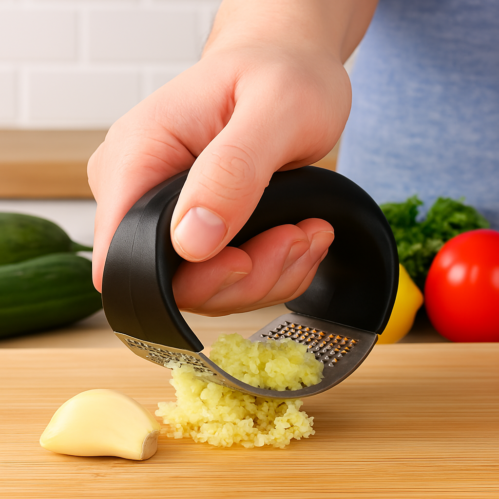 Prepárate para cortar, picar o machacar ajo, jengibre y nueces de forma rápida, limpia y sin olores en las manos. Su mango antideslizante y acero inoxidable facilitan el proceso, sin residuos ni complicaciones.